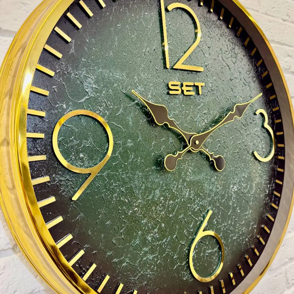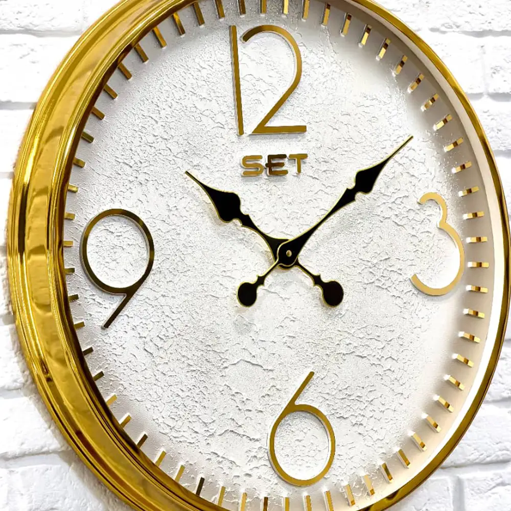یکی از مهم ترین ویژگی های ساعت دیواری ست کد ۱۰۷، استفاده از آبکاری کروم طلایی در بدنه آن است. این نوع آبکاری باعث می شود ساعت در برابر تغییر رنگ، رطوبت و گذر زمان مقاومت بالایی داشته باشد. رنگ طلایی کروم جلوه ای براق و مدرن ایجاد می کند که به راحتی با دکوراسیون های کلاسیک، مدرن و حتی مینیمال هماهنگ می شود.