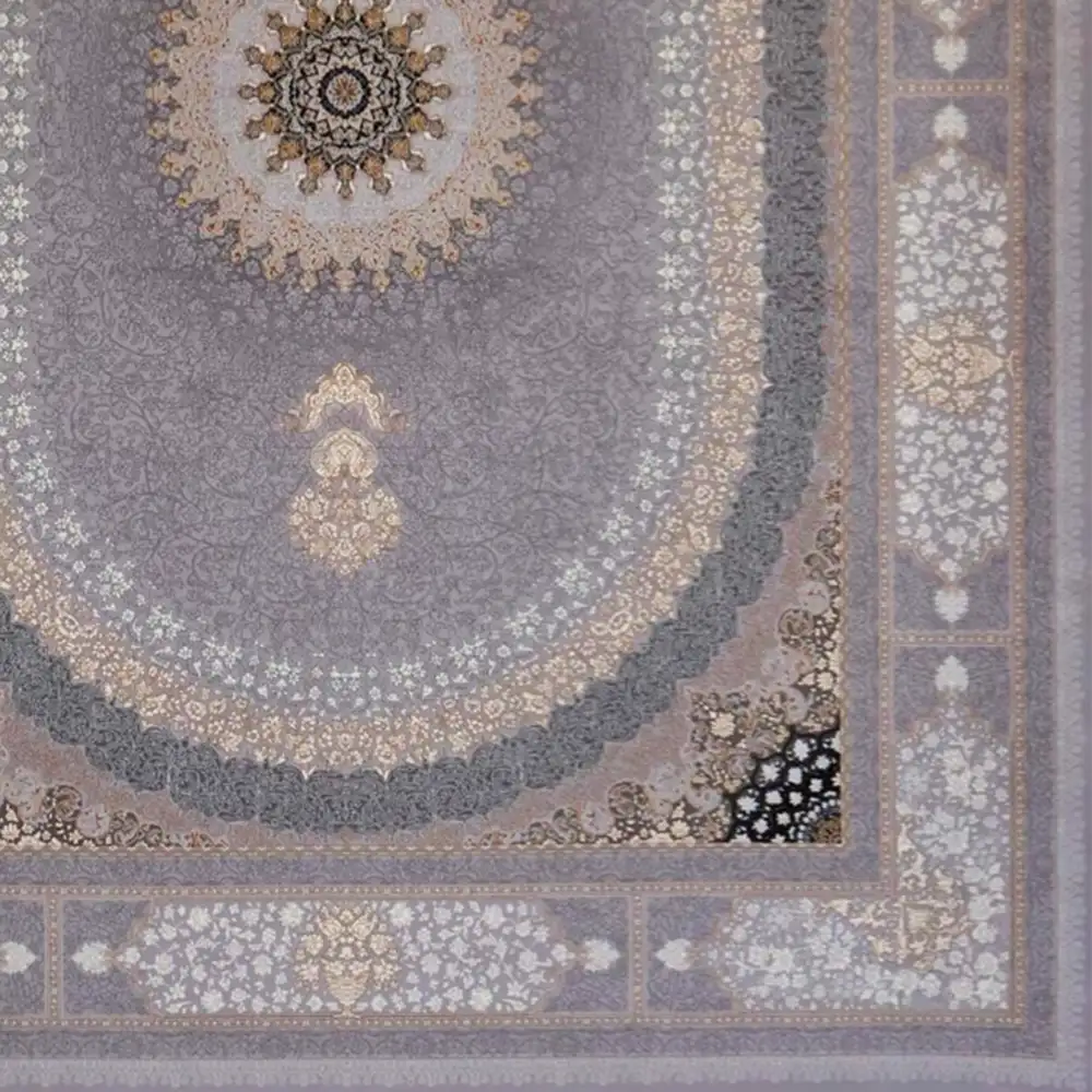 فرش ماشینی 700 شانه نگین فیروزه مدل صدرا نقره ای؛ جلوه ای لوکس برای دکوراسیون منزل